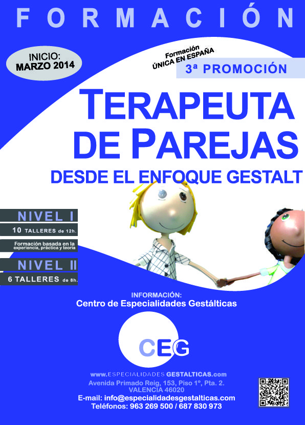 - Apoyo didáctico a través del Libro: Material de Apoyo del Terapeuta de Pareja desde el Enfoque Gestáltico (Edición 2014). Material que hemos elaborado tras la experiencia de las dos primeras Promociones, por lo cual está ajustado a las características específicas y didácticas que se desarrollan en cada taller.